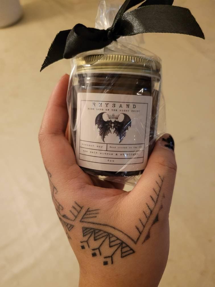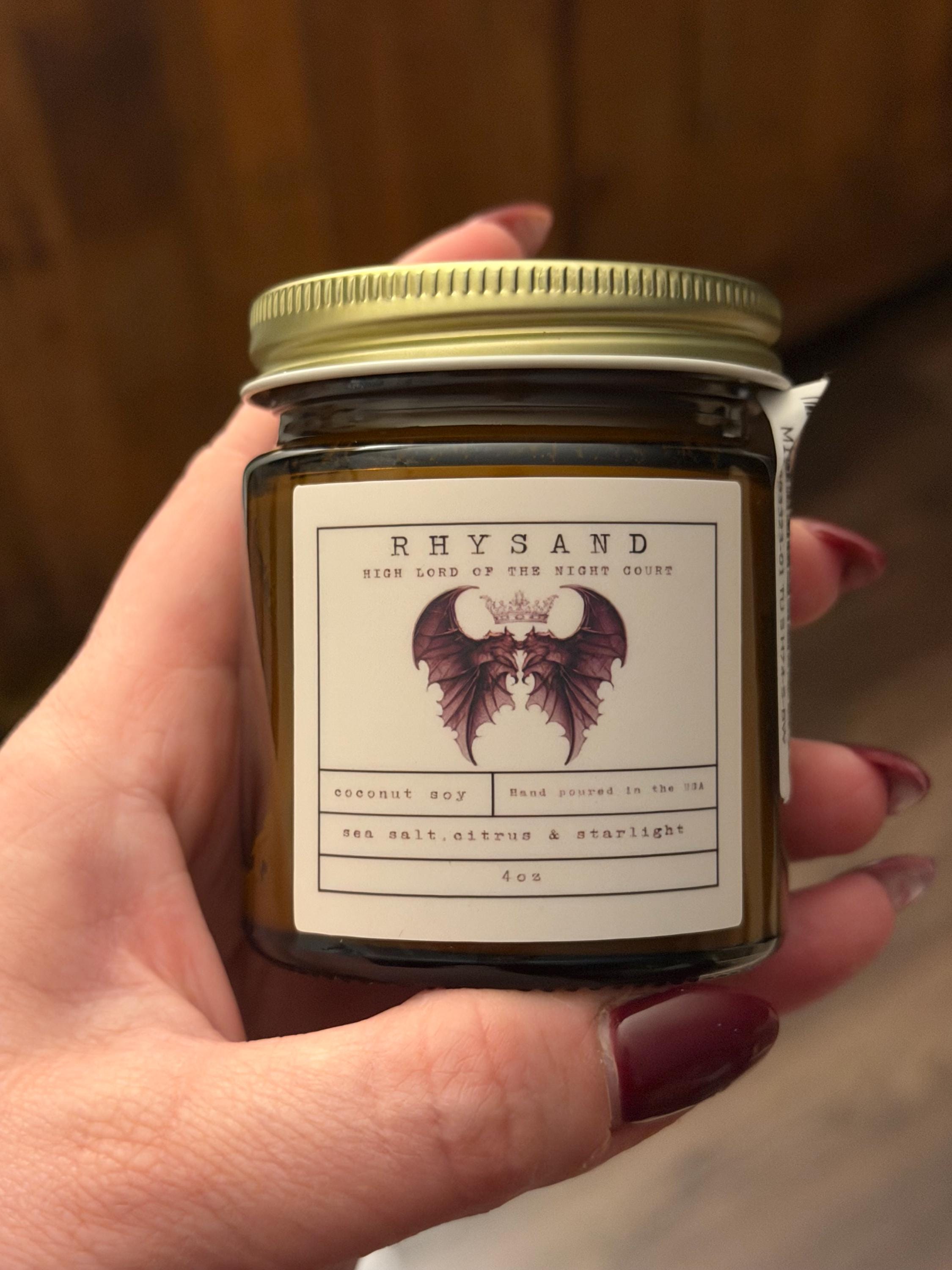 The scent of the High Lord of the Night Court. A balance of sea salt, orange peel and green grass fold into waves of sage and eucalyptus mid notes, which rest on an island of moss, teakwood, and patchouli.