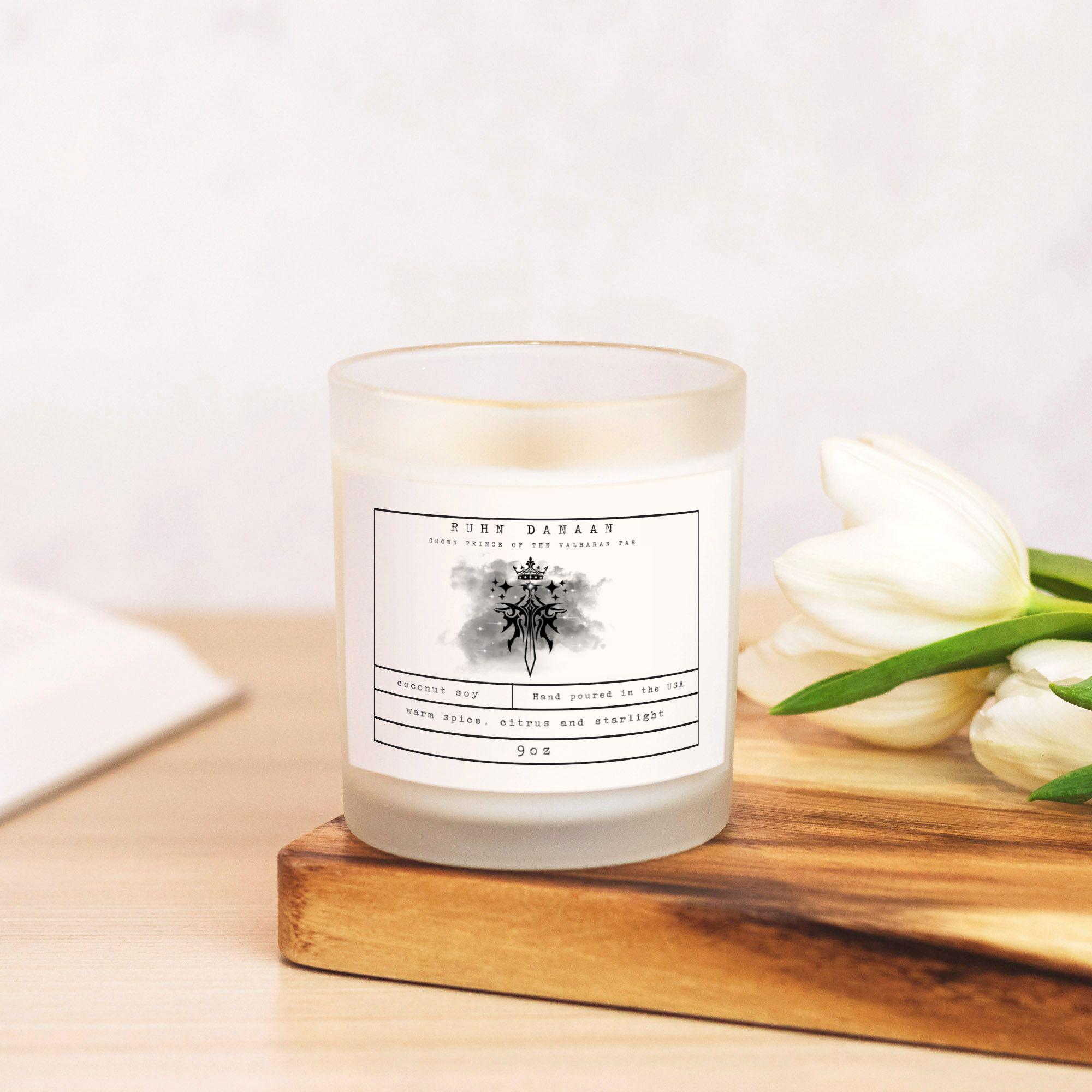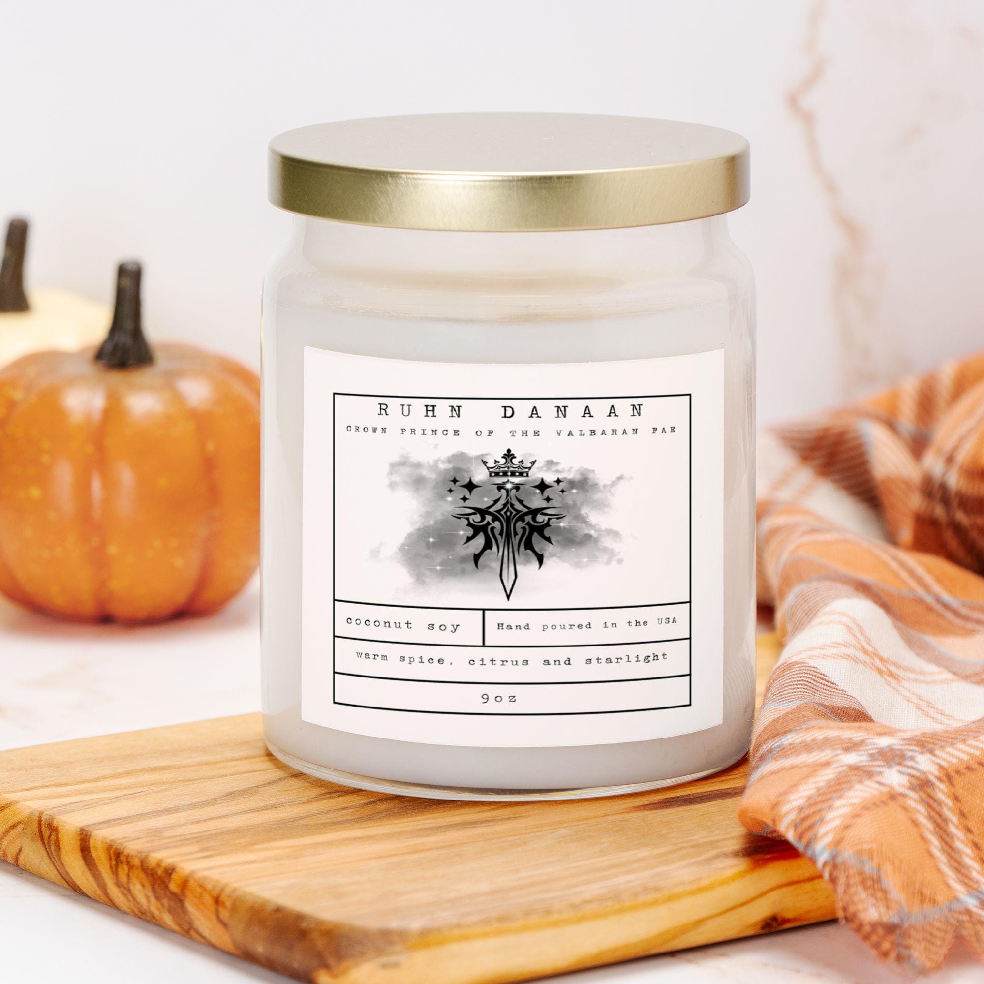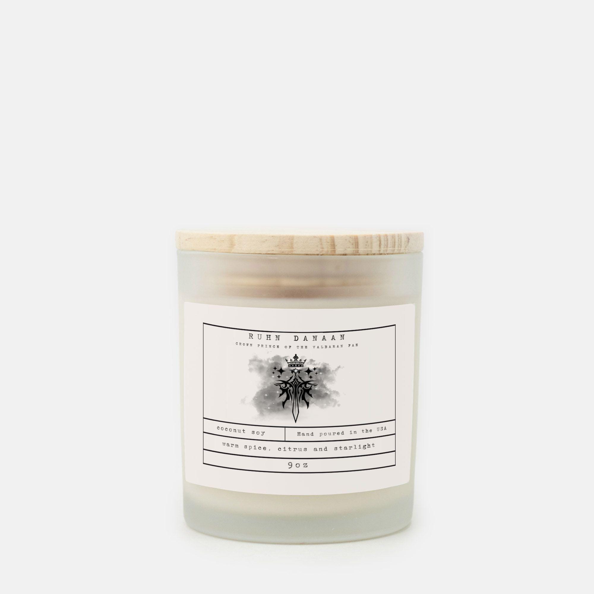 The scent of Ruhn Danaan, Crown Prince of the Valbaran Fae; Warm spice, citrus and starlight. This fragrance has a fresh feel with beautiful notes of greens intertwining with subtle notes of warm spice and citrus on a base of musk and moss.