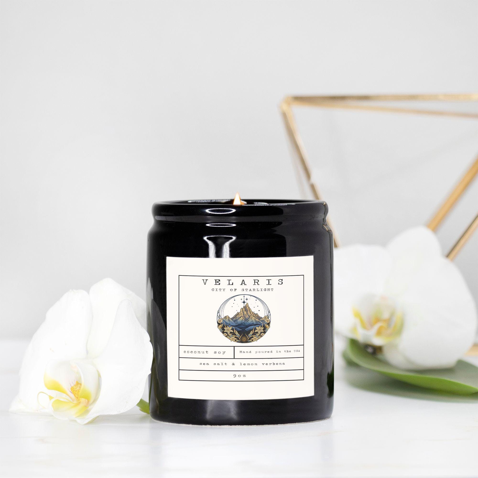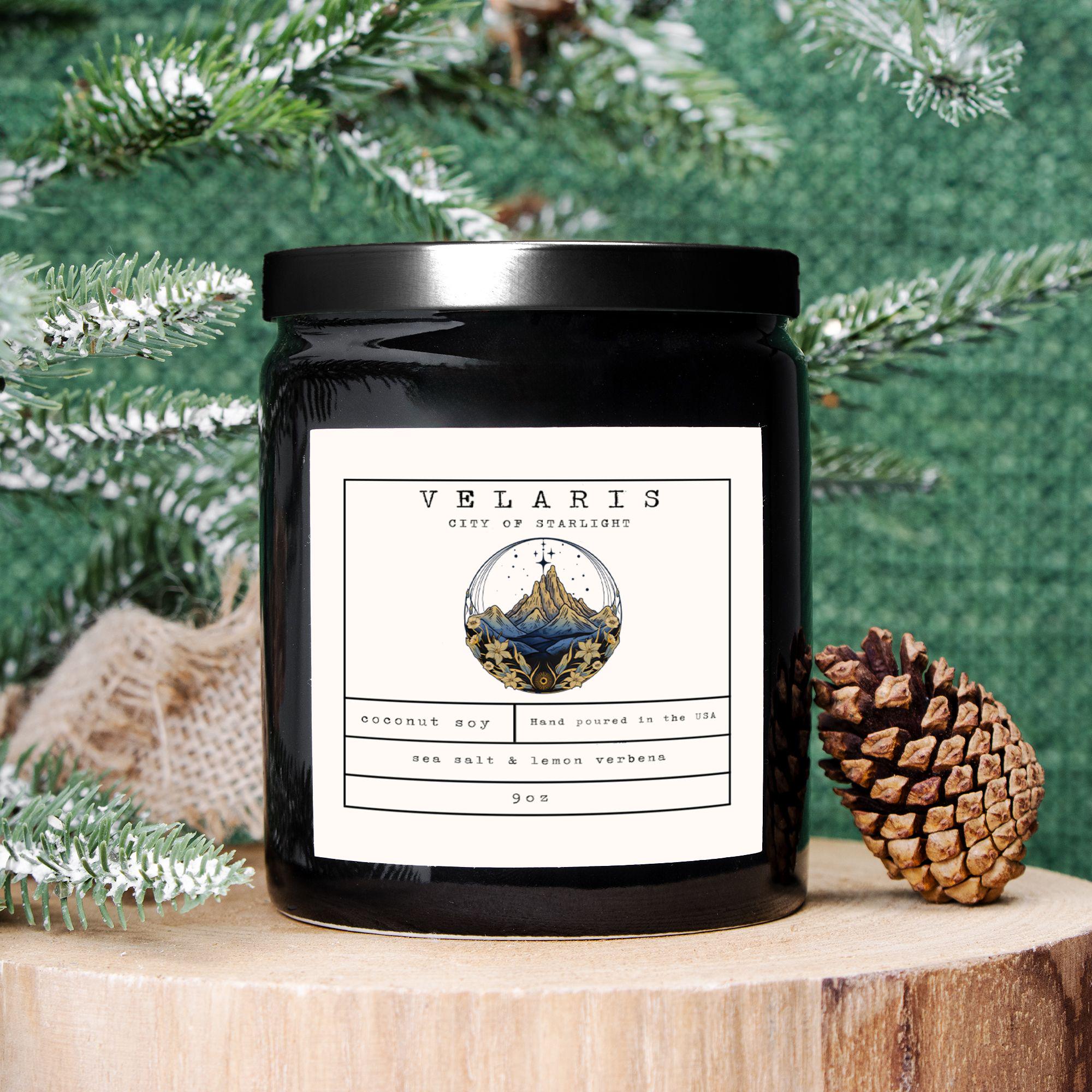 Experience the scent of Velaris! Transport yourself to the heart of Velaris on an ocean coastline where the sea churns again the rocks. Top notes of zesty Bergamot and crystalline Sea Salt awaken the senses, leading you into a calming mist of Magnolia's fresh floral embrace and the cool refreshing undercurrent of Mint. The journey concludes with base notes of Juniper and a hint of Light Musk that echo the tranquil lapping of waves.