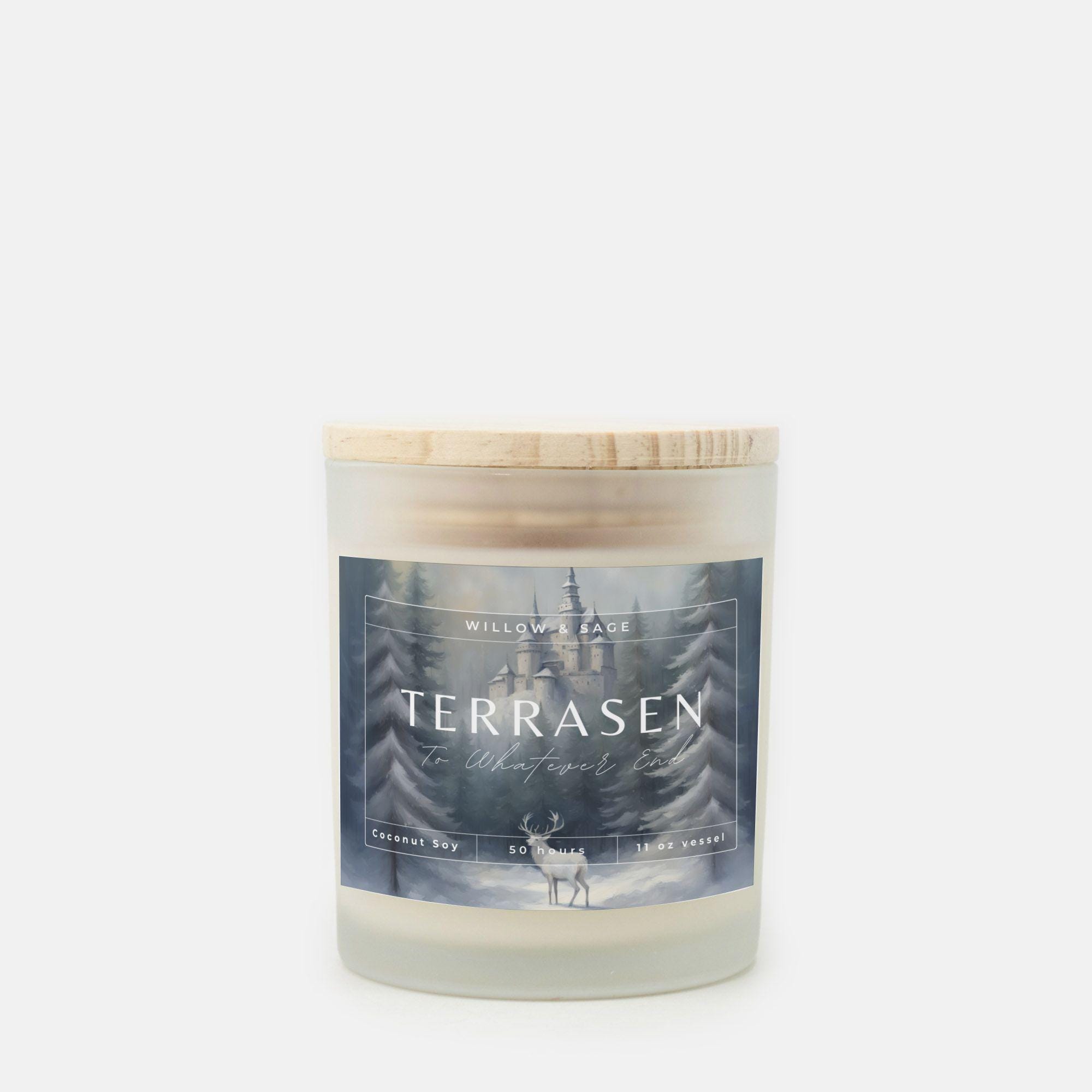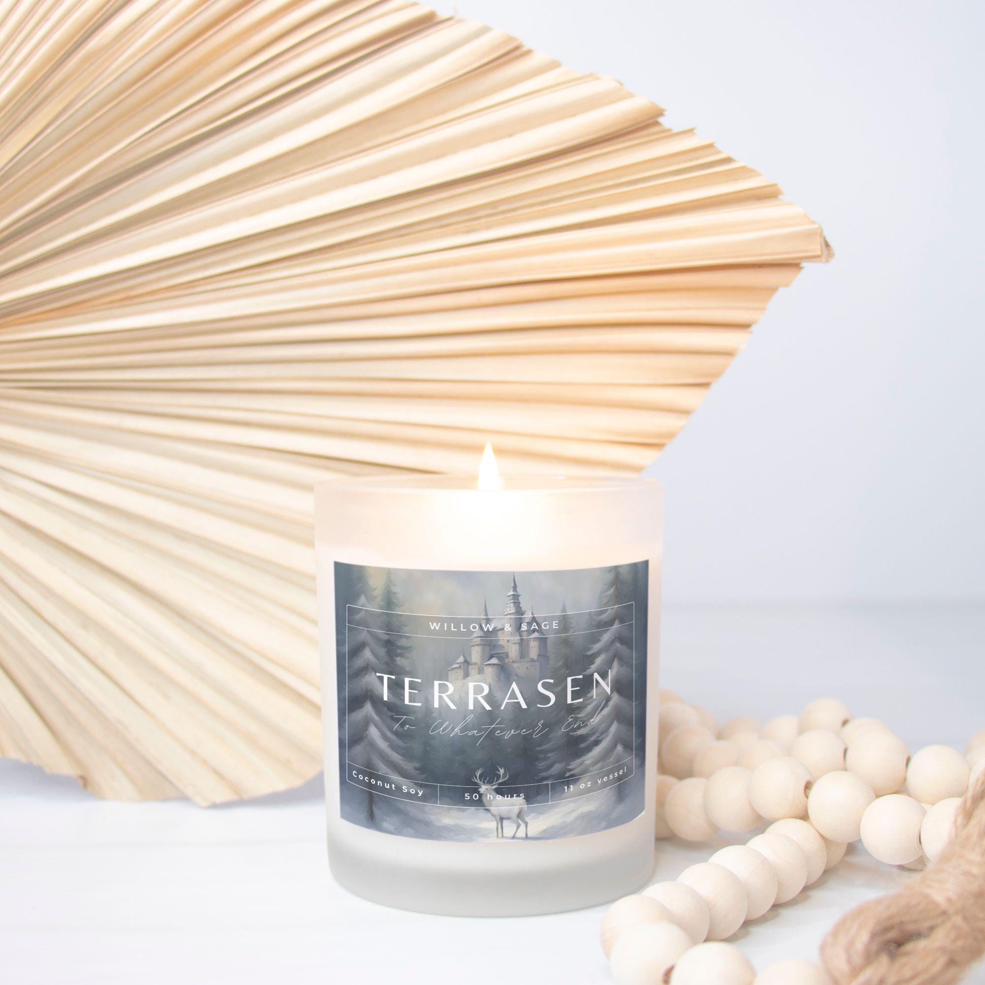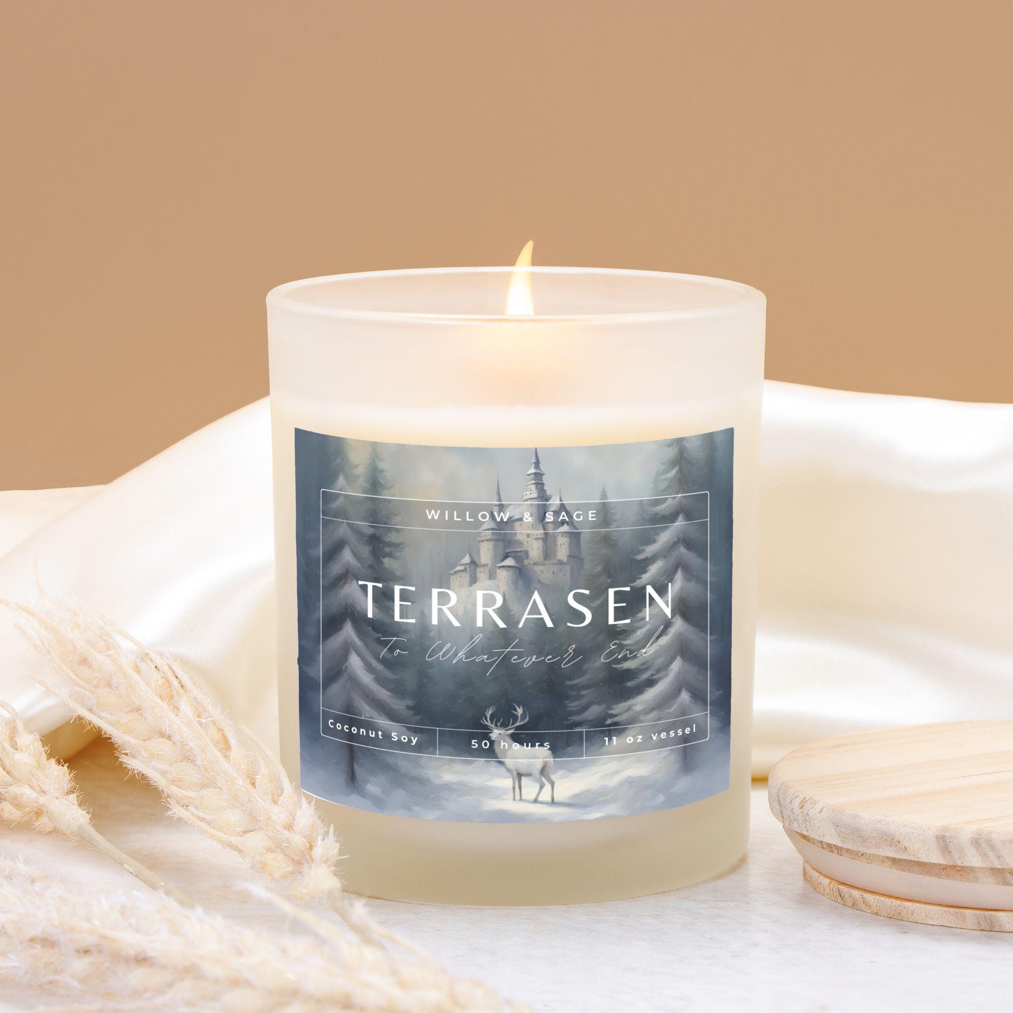 Experience the scent of Terrasen! Transport yourself to Aelin's homeland and experience the gorgeous scent of Pine and Snow. A symphony of the forest, it opens with brisk top notes of eucalyptus, instantly breathing life into your space. The heart of aromatic cedar, moss, and bayberry is an invitation to wander among the woodlands, while the earthy base of Fraser fir and patchouli grounds the scent in nature's serenity. As the incense-infused air fills your room, you'll find in this bottle the peace and grandeur of a storied evergreen, encapsulating the essence of Terrasen. Experience the magic today and transform your home into a haven of enchantment.