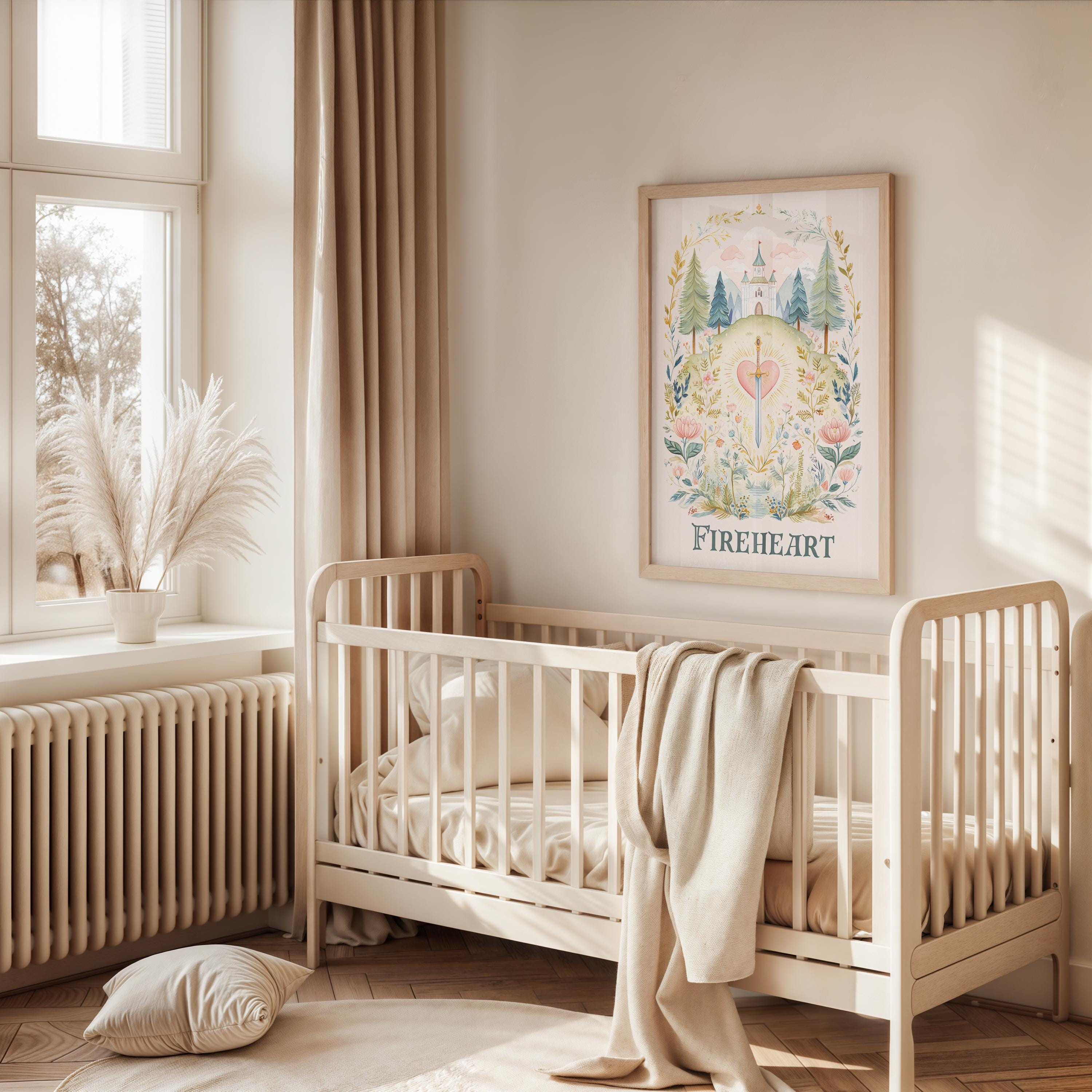 **FRAMES NOT INCLUDED** Our Fireheart art print brings one of the most beloved symbols from Throne of Glass to life in a warm, whimsical illustration perfect for nurseries, reading nooks, and fantasy‑inspired spaces. Designed for fans of Sarah J. Maas who want décor that feels meaningful, magical, and beautifully modern, this print blends soft colors with rich symbolism to create a piece that stands out without overwhelming your space.