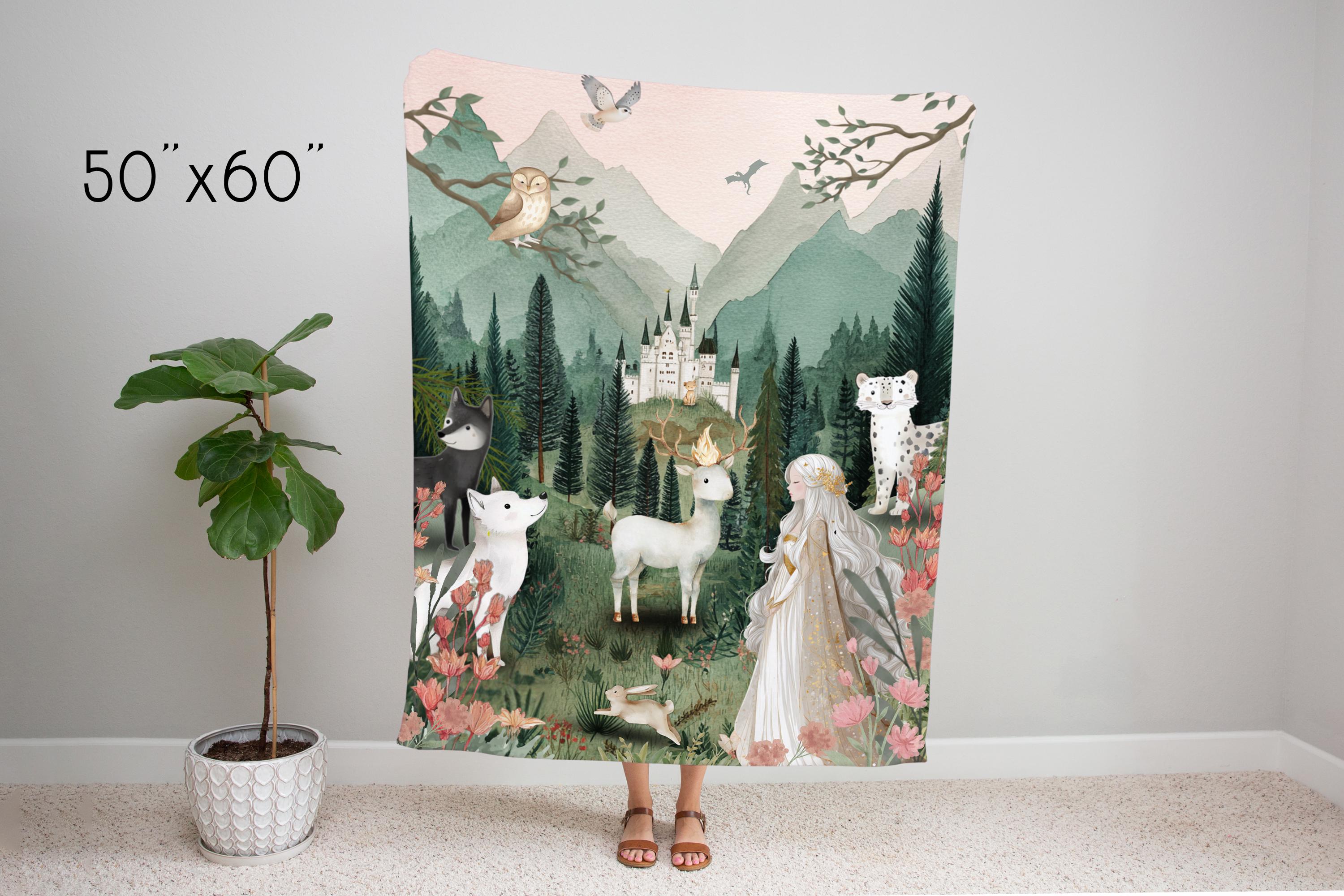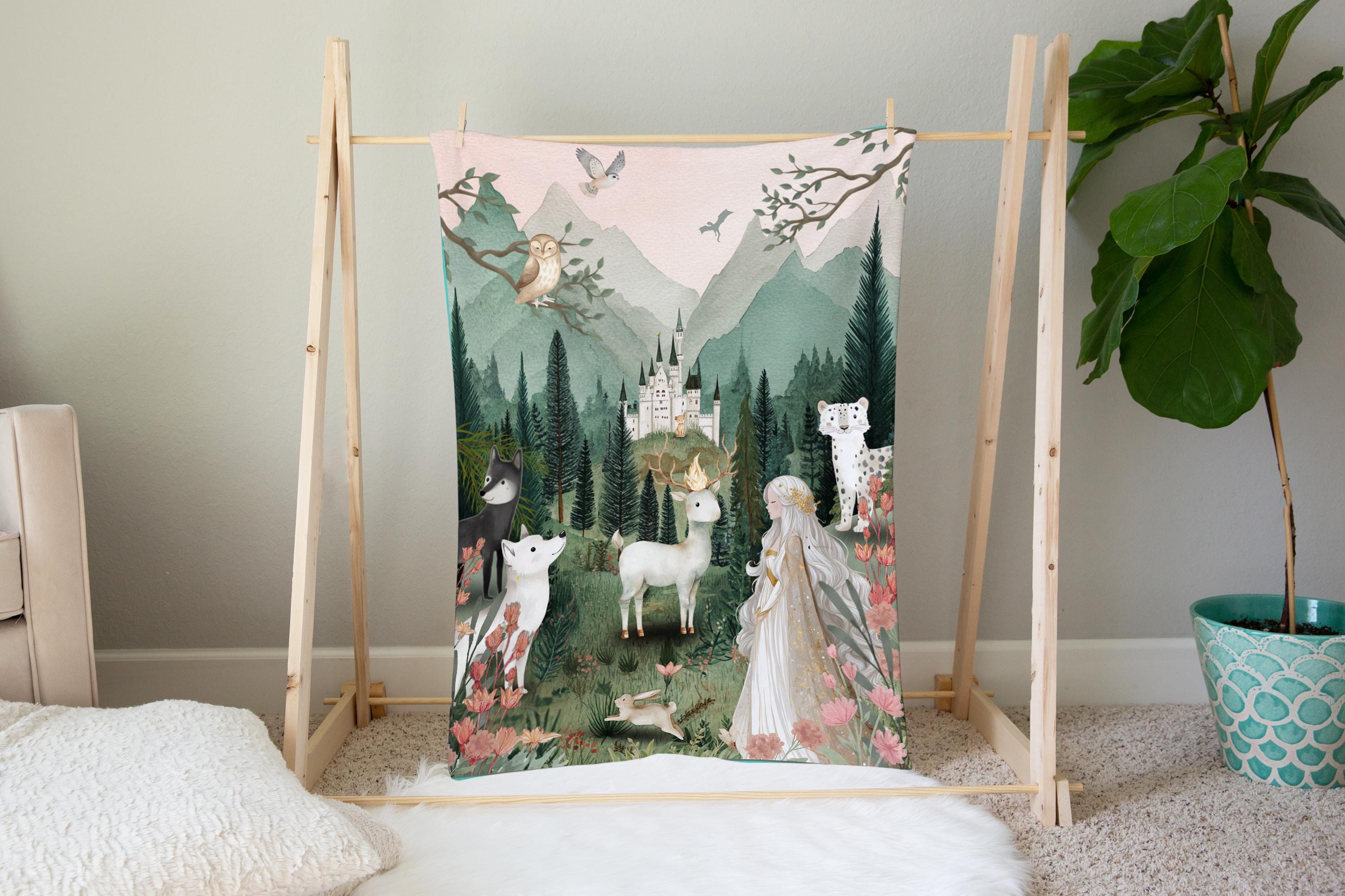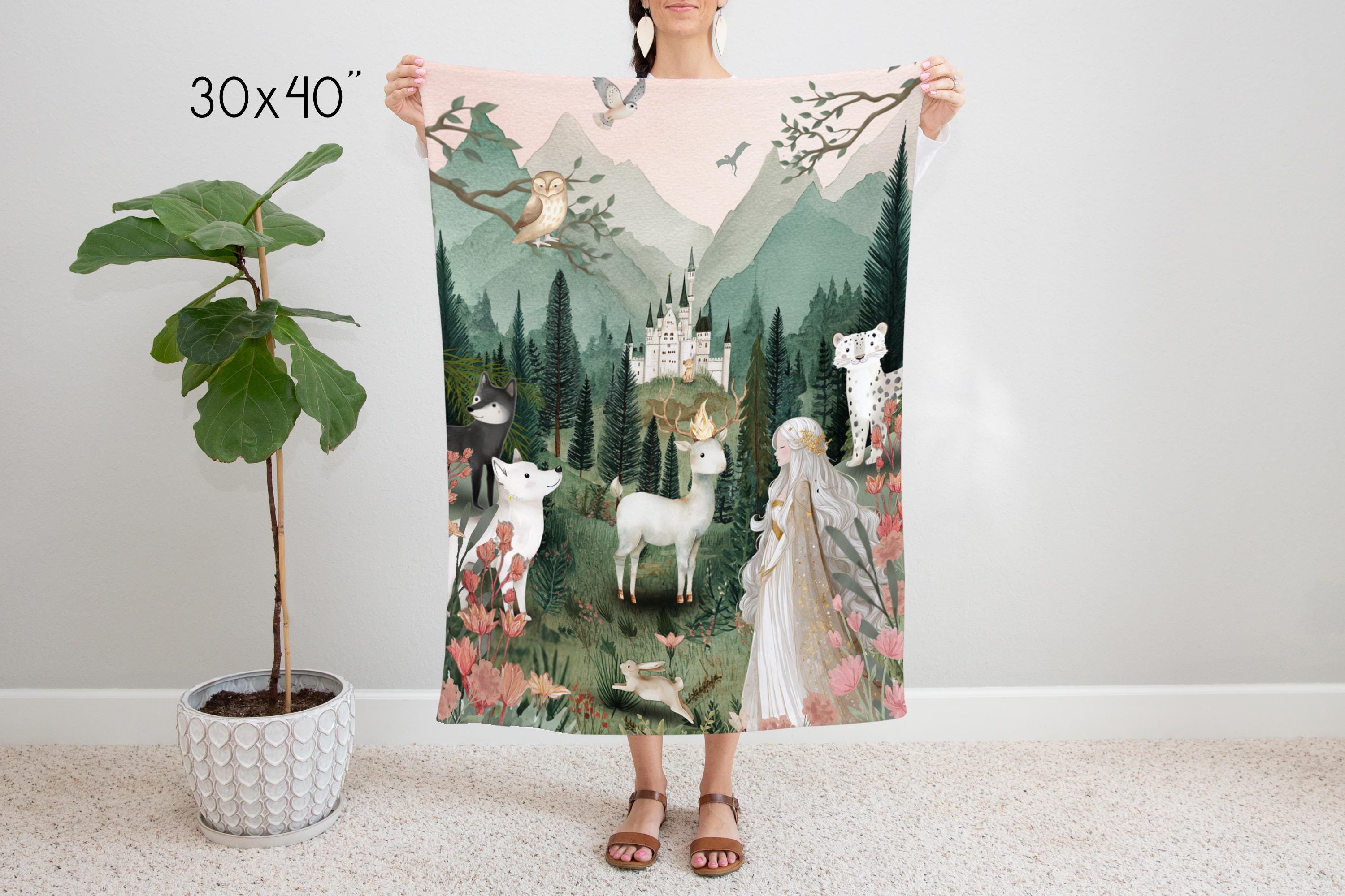 Wrap yourself or your little one in the magic of a world filled with courage, loyalty, and ancient forests. This Throne of Glass-inspired minky blanket features an enchanting woodland scene brought to life with rich, storybook detail-perfect for readers who want to bring a touch of fantasy into their home. This scene is inspired by the tapestry hanging in Celeana's room in the glass castle done in a child friendly style.