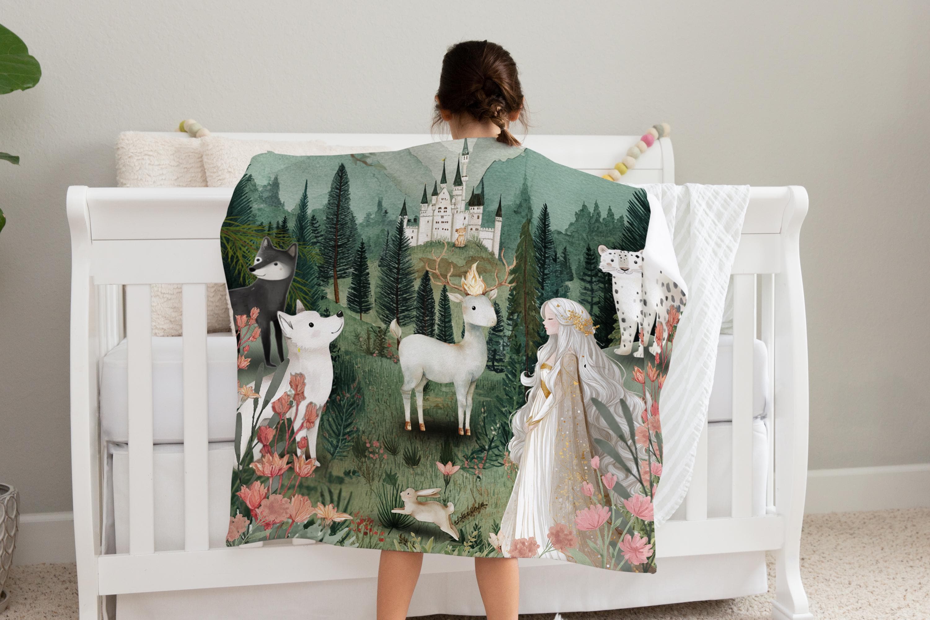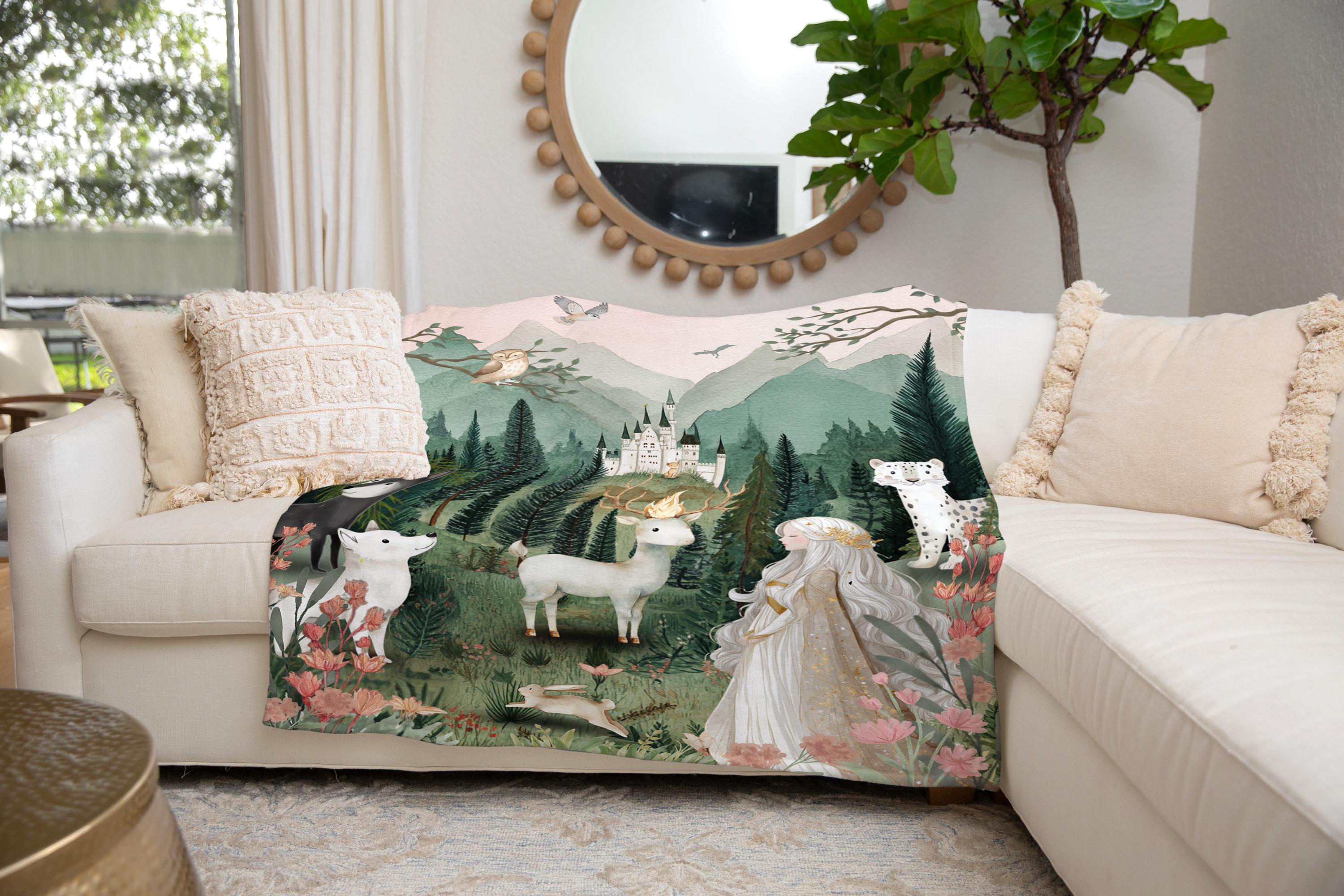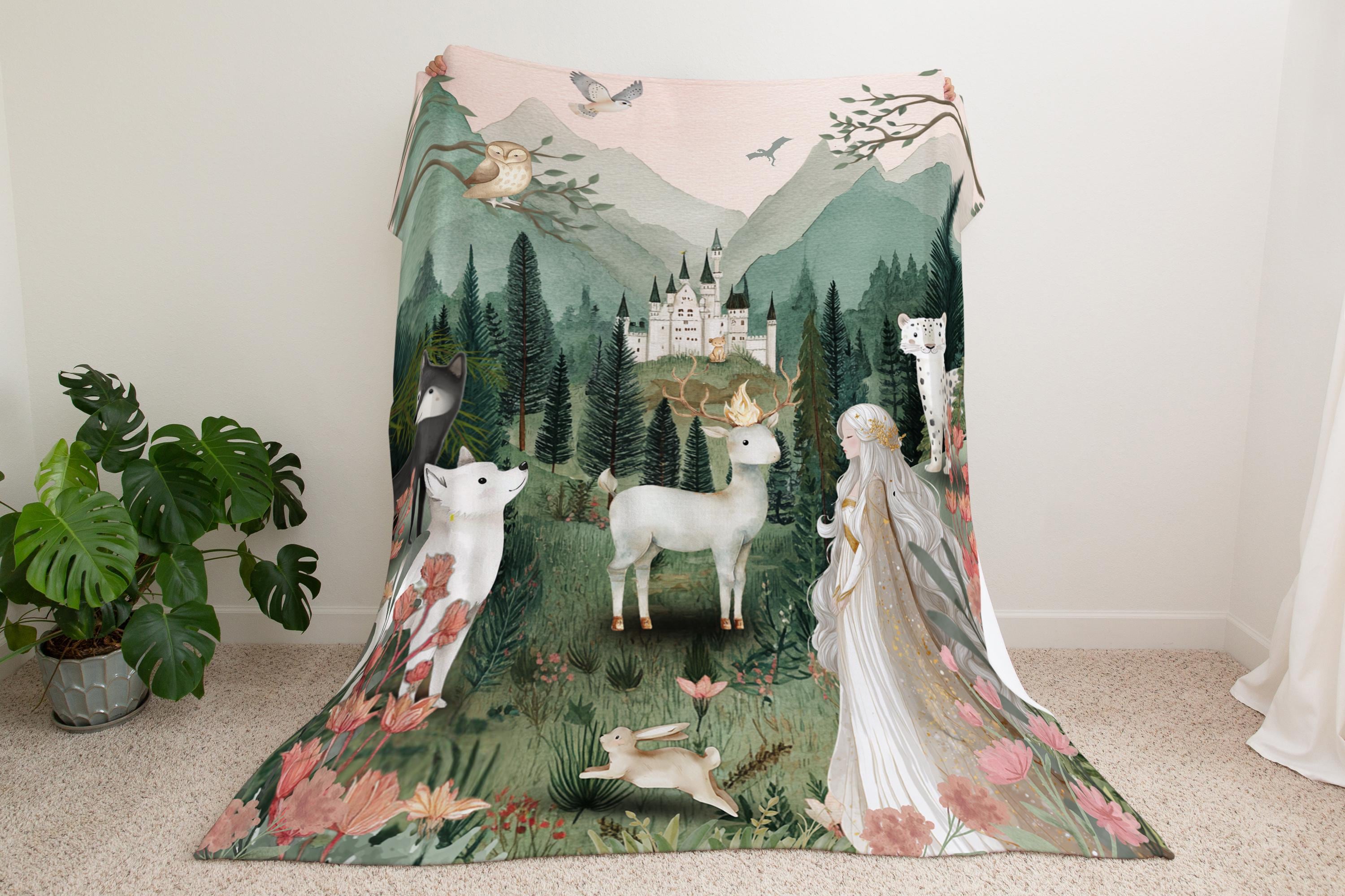 Wrap yourself or your little one in the magic of a world filled with courage, loyalty, and ancient forests. This Throne of Glass-inspired minky blanket features an enchanting woodland scene brought to life with rich, storybook detail-perfect for readers who want to bring a touch of fantasy into their home. This scene is inspired by the tapestry hanging in Celeana's room in the glass castle done in a child friendly style.